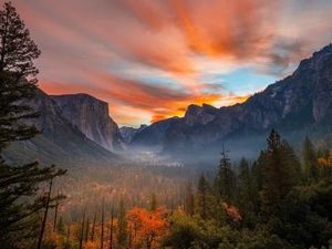 trees, The Hills, Larches, Way, Mountains, viewes, autumn