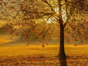 trees, Way, Plants, autumn, asphalt, viewes, sun