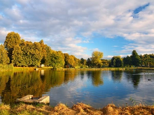 red head, trees, autumn, Field, Leaf, oak
