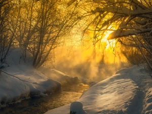 Yellowed, forest, viewes, autumn, trees, Way