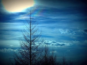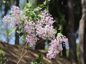 Bench, Mountains, viewes, rays of the Sun, trees, lake