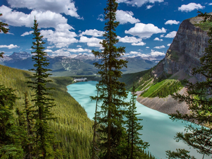 Lake Hintersee, Mountains, trees, Bavaria, viewes, winter, Alps, Germany, Berchtesgaden Municipality, snowy