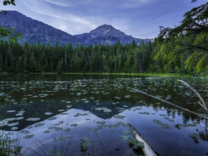 viewes, Snowy, clouds, Bird, Mountains, trees