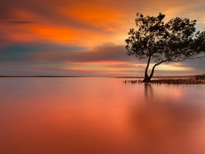 winter, viewes, light breaking through sky, trees