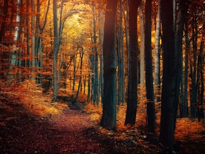 trees, viewes, house, Willow, Path, fountain, Park, Bush