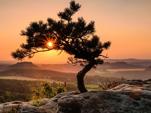 Bush, Mountains, waterfall