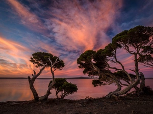 lake, Mountains, viewes, clouds, trees, forest