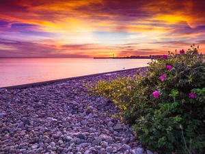 grass, trees, Great Sunsets, viewes, River, bridges, clouds
