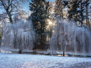 viewes, lake, Mountains, clouds, forest, Yoho National Park, Emerald Lake, Canada, reflection, trees