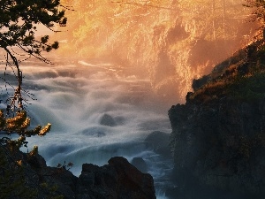 Sunrise, clouds, Palms, VEGETATION, sea