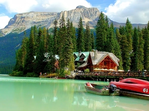 Leaf, clouds, trees, viewes, lake