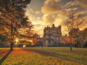 pine, rocks, Sky, clouds, Fog, trees