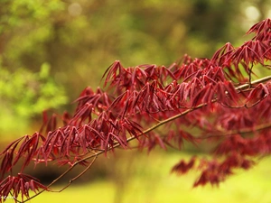 Fog, trees, cote, viewes, Sky, Meadow, Sunrise, color