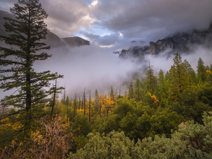 black, flourishing, trees, crow
