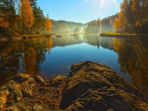 Embalse de Rosarito Reservoir, Spain, viewes, Mountains, trees, lake