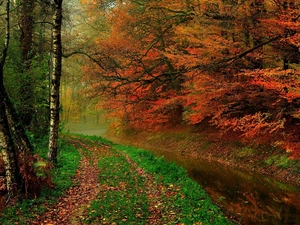 mossy, Stones, viewes, forest, trees, River, stream, fern
