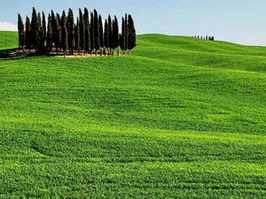 field, The Hills, Great Sunsets, trees, cypresses, Tuscany, Italy, viewes