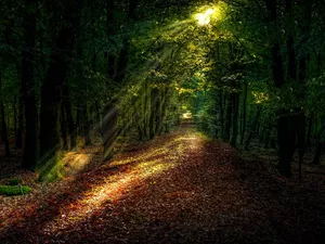Przebijające, ligh, Spring, sun, luminosity, Path, forest, flash