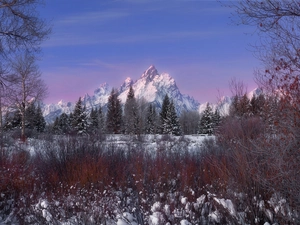 trees, Fog, grass, Flowers, Meadow, viewes, Spring