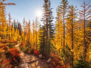 viewes, Mountains, Spruces, Flowers, green ones, trees
