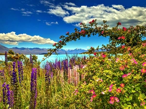 Pink, Flowers, trees, viewes, twig