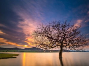 trees, viewes, clouds, Bush, Sunrise, woods, Mountains, Fog