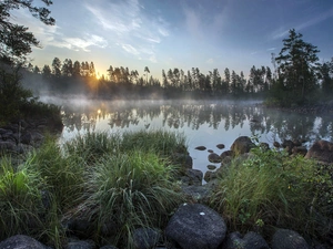 viewes, Fog, inclined, trees, forest