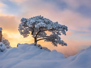 trees, forest, Red, Fog, autumn, viewes, Leaf