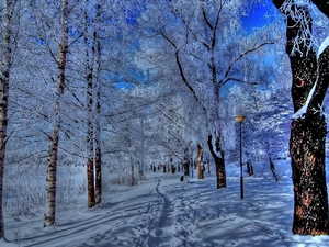 autumn, Way, trees, Fog, forest, color, viewes