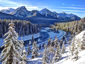 snow, Way, viewes, Fog, trees, winter
