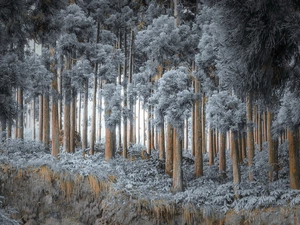 trees, lake, clouds, forest, Mountains, viewes, VEGETATION
