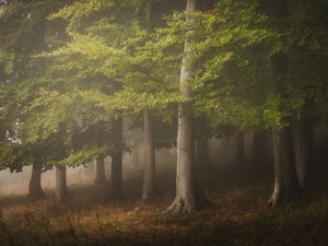 forest, Green, viewes, Fog, trees, Basque Country, Spain, Path