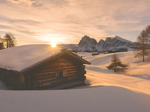 forest, Mountains, trees, viewes, clouds, Spring, narcissus, Meadow, Flowers