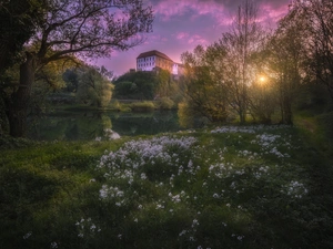 forest, illuminated, trees, viewes, Leaf, autumn, Stems, branch pics, Hardwood