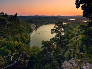 trees, Mountains, Spruces, forest, viewes, River