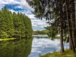 viewes, forest, River, trees, winter