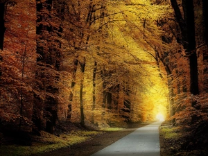 Fog, trees, rushes, viewes, Platforms, lake, autumn, forest
