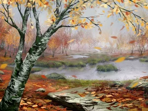 forest, autumn, trees, viewes, Stones, Leaf, stream, mossy, River