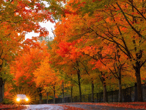 Leaf, lake, trees, forest, Mountains, twilight, viewes