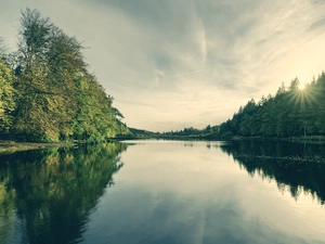 forest, River, mossy, viewes, Stones, waterfall, flux, Plants, trees, rocks