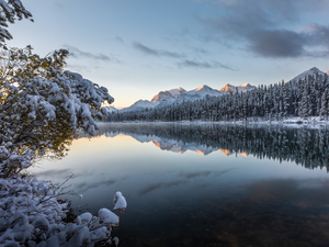 River, Mountains, dry, grass, Fog, forest