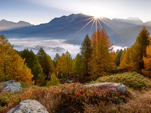 Bush, Way, viewes, grass, Field, trees, autumn
