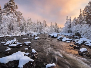 winter, Great Sunsets, Field, trees