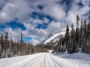 snow, winter, viewes, Great Sunsets, trees, River