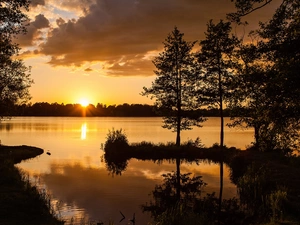 viewes, Snowy, winter, Great Sunsets, snow, trees