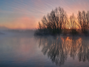 trees, viewes, forest, green ones, lake