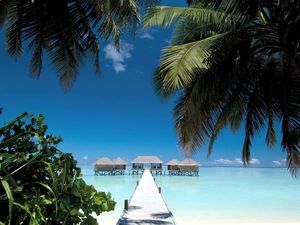 Houses, Hammock, Mountains, Palms, sea