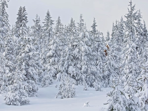 viewes, Mountains, snow, fence, incident, trees, autumn, Houses