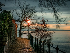 trees, viewes, Norway, snowy, Ringerike, house, winter, lake