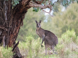 trees, autumn, rocks, lake, viewes, Stones